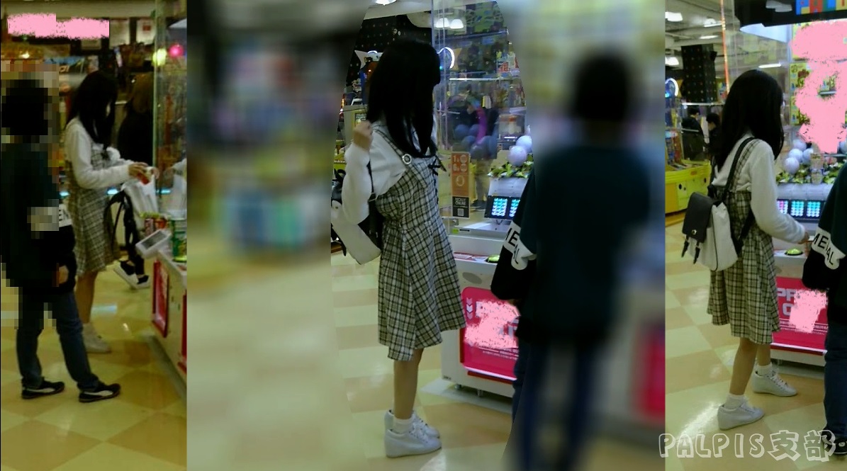途中小型のクレーンゲームをプレイしようと前屈みになったターゲットを見て、撮影者さんは即座に背後にまわります。