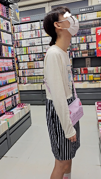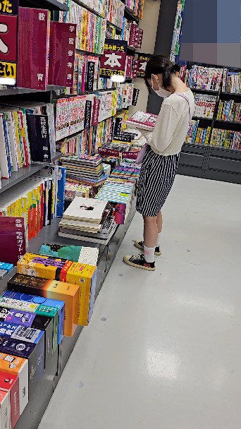 本屋さんの児童本コーナーにいる私服ロリ風女子がターゲットです。