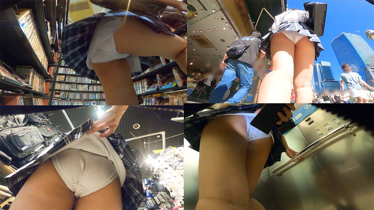 制服女子 盗撮風 パンチラ 逆さ撮り スタイル抜群 がっつり 接写 めくりあり ローアングル 2アングル撮影 フルHD