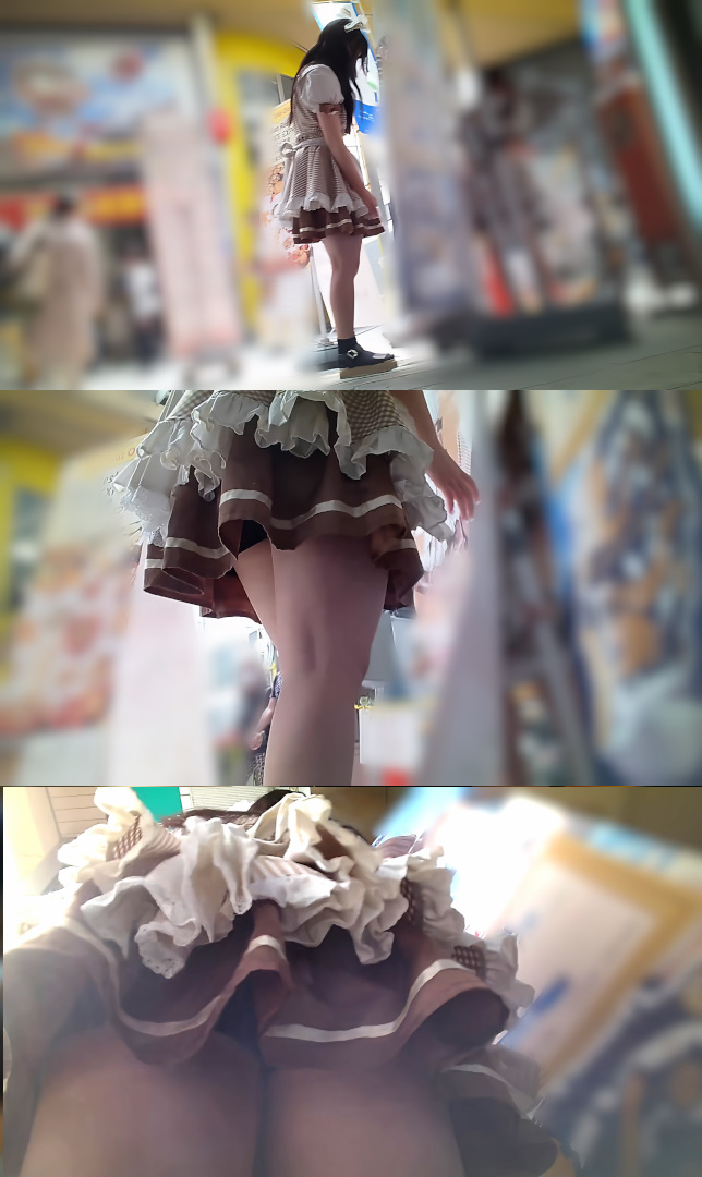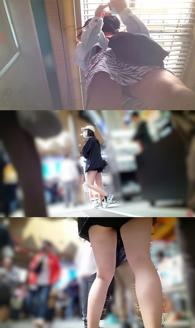 今作では黒髪パッツンロングヘアの私服女子さんのパンツを撮りまくりです。