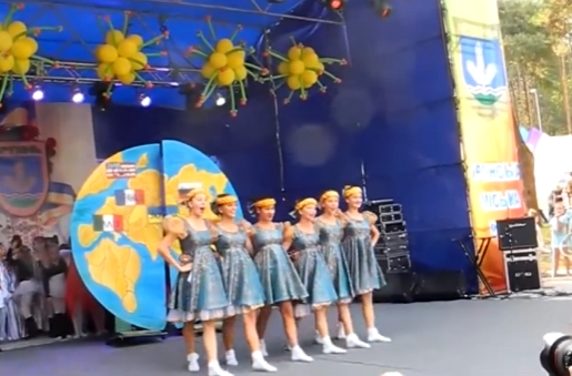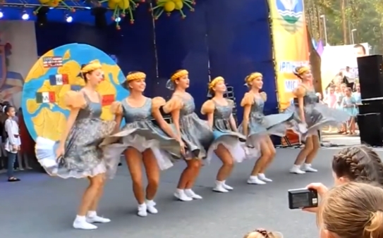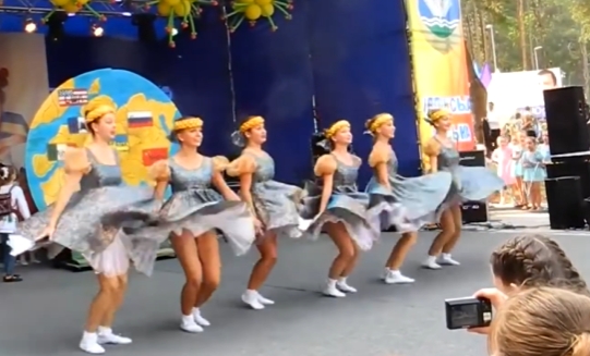 衣装に身を包んだロシア人女性のダンスチラです。