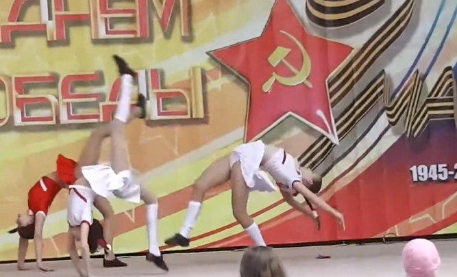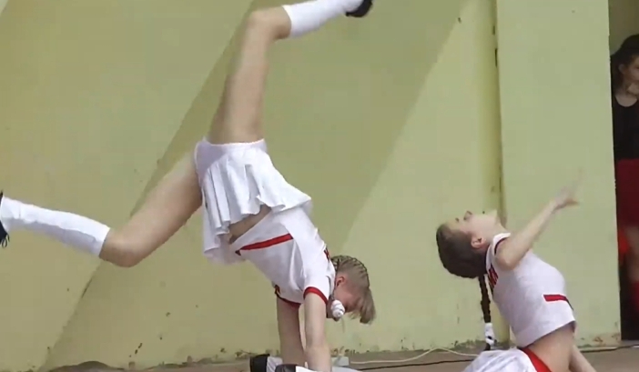 0:50 客席を向いての前転で白アン全開(この子がかなり可愛いです)
