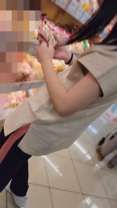 お菓子コーナーに来ていたミニマムな私服女子の胸チラを狙います。