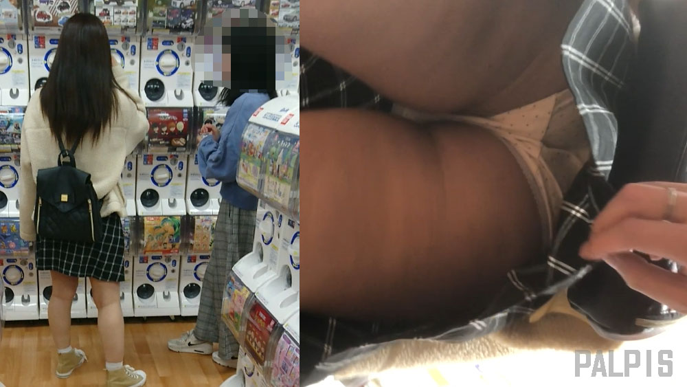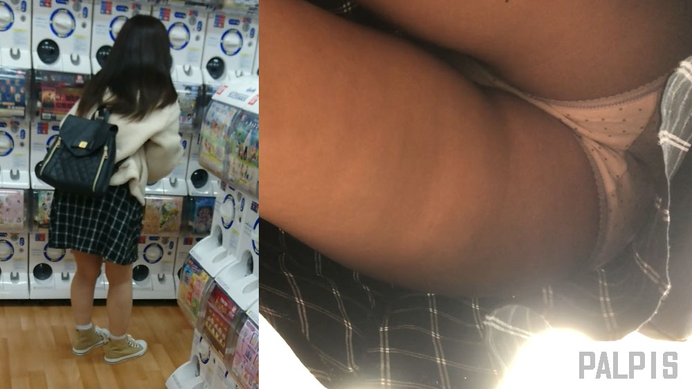 今作ではガチャコーナーにてチェックスカートの私服女子を狙います。