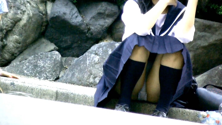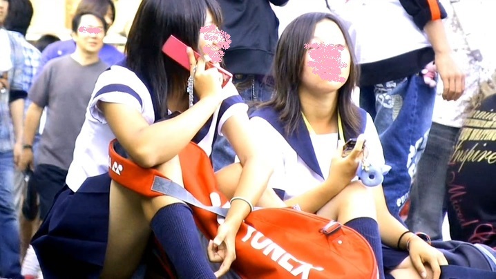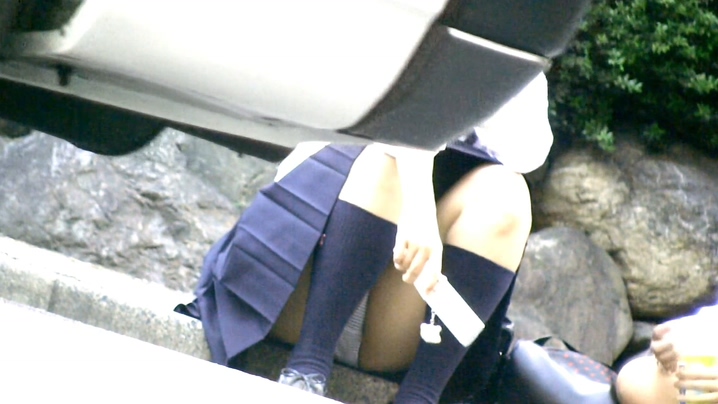 お祭りを楽しむ制服女子たちの座り込みパンチラ作品です。