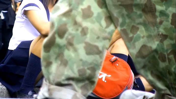最初のテニス部活帰りの女の子もガードしている横から生パンを見せてくれました。残念ながら迷彩服の方が堂々と見ようとして邪魔ではあったものの、何とか見ることができました。