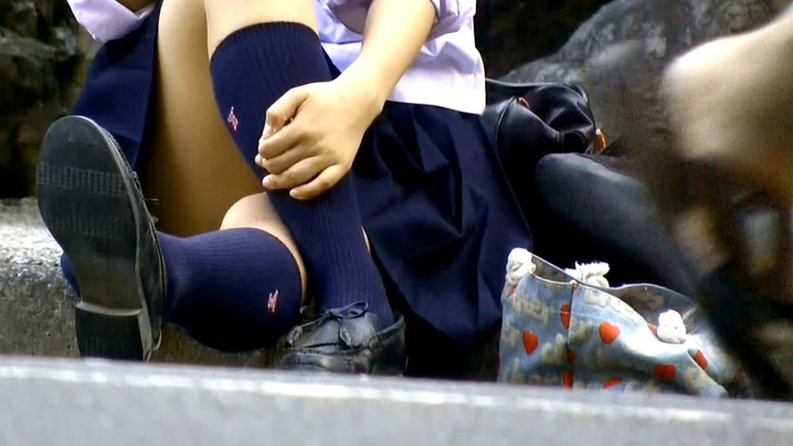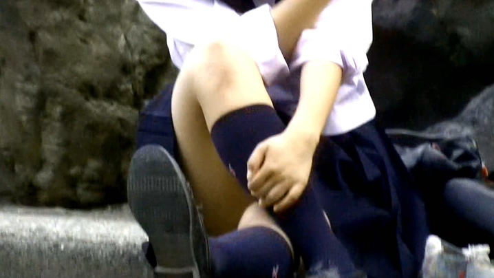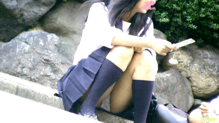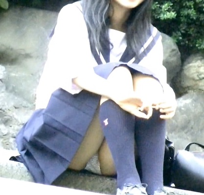 続きまして、脚を組むようにして座っているハイソックスのセーラー服女子です。