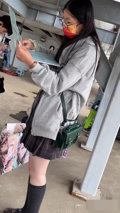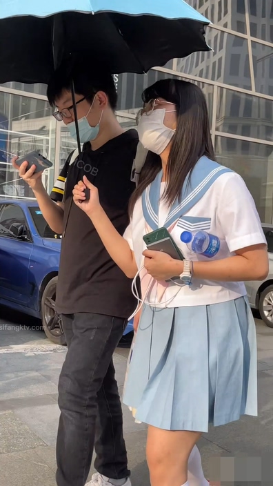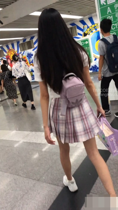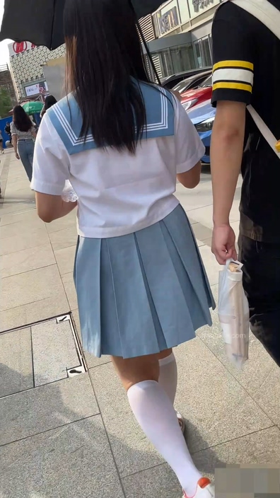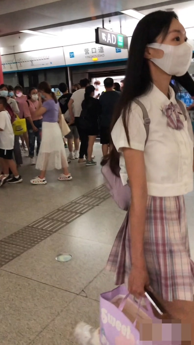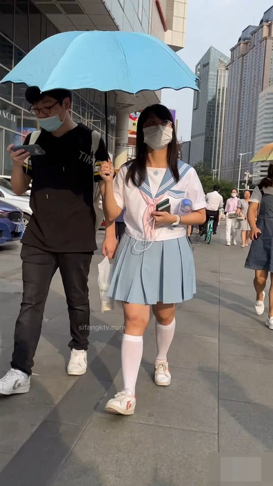 画面には制服コーデ風のファッションに身を包んだチャイニーズ女子が足早に歩いています。
