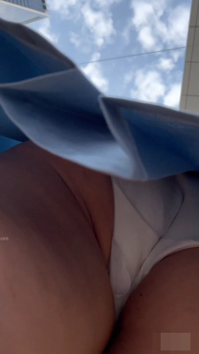 どうなるのかと思いきや、撮影者の指が伸びてスカートをひょいと摘まみます。