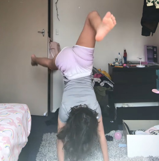 なぜこの少女がここまで腕立て前転をこだわるかは不明です。