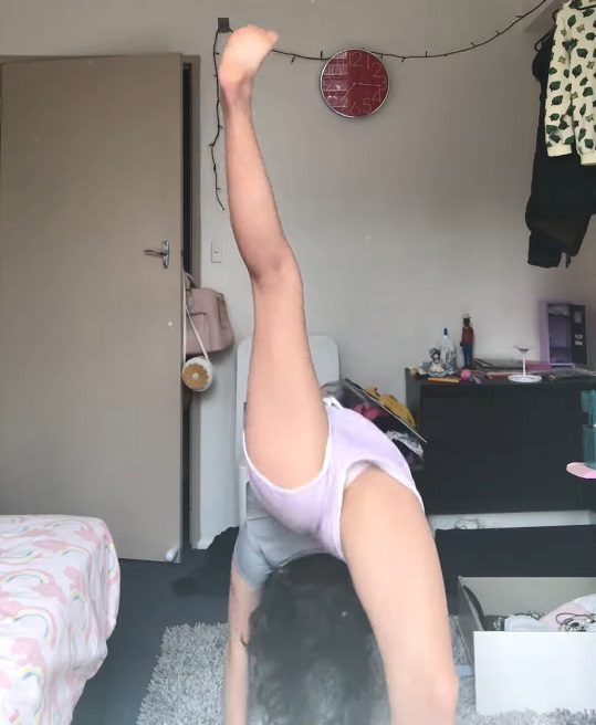 腕立て前転は途中、カメラにお股を向けてのブリッジ状態になってしまうため、ホットパンツ等をはいているとその隙間から下着等が見えてしまう恐れがあります。