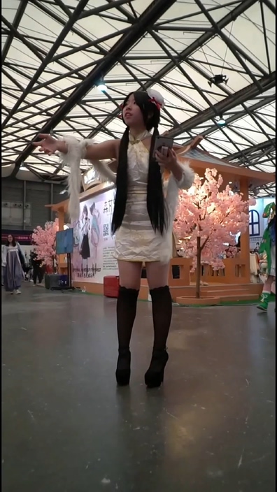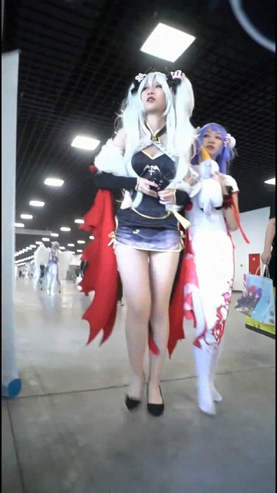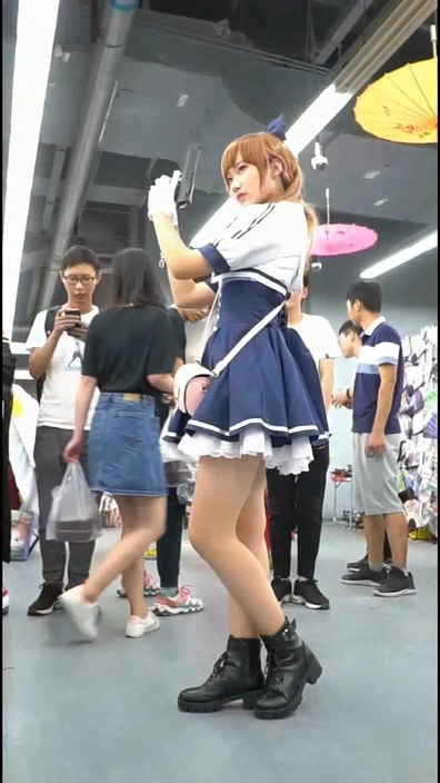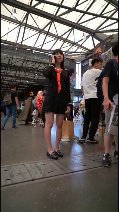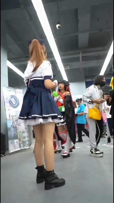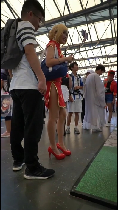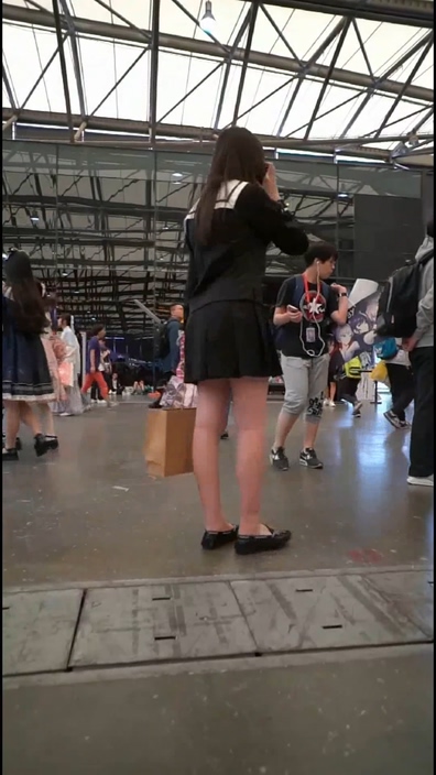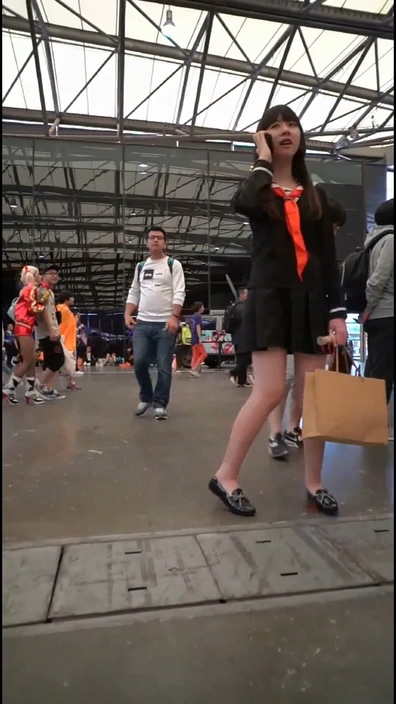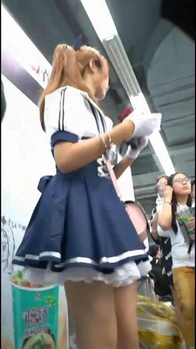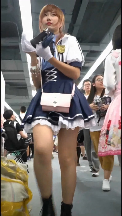 イベント会場でコスプレ姿のチャイニーズ女子を逆さ撮りする作品です。