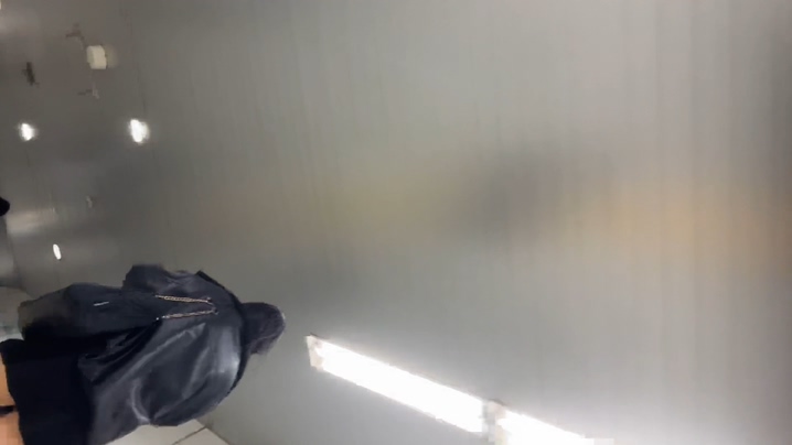 3分47秒辺りからはレジの列に並ぶ私服ちゃんのすぐ背後に同じように並んで、逆さ撮りを続行します。