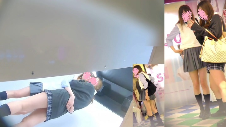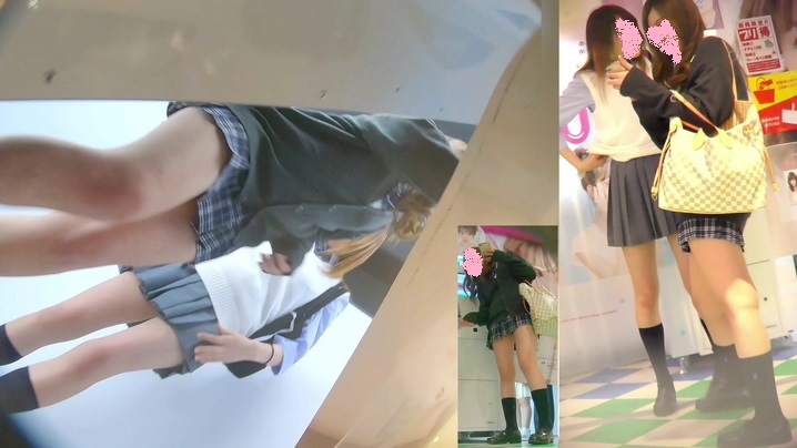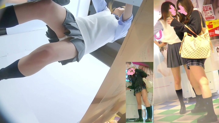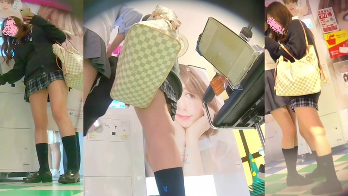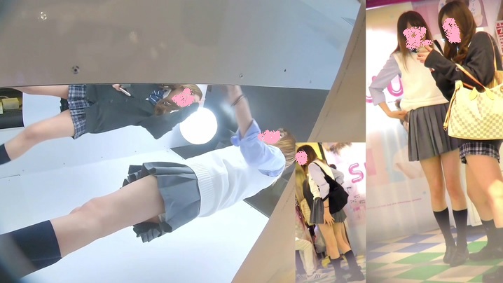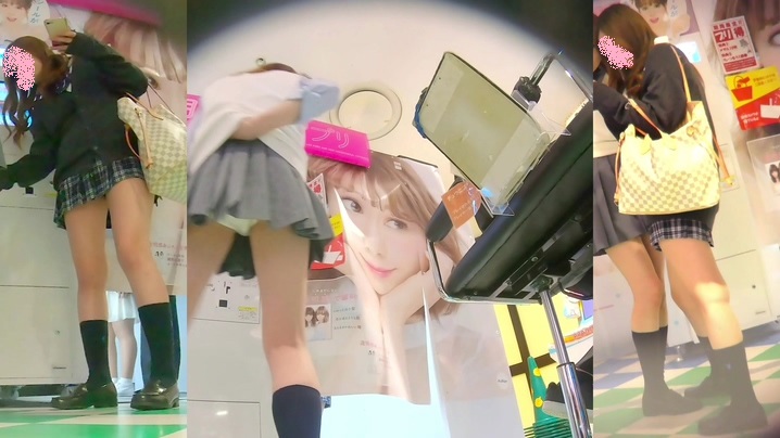プリクラを撮影している制服女子を狙ってローアングルから隠し撮りしている作品です。