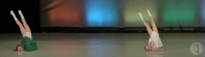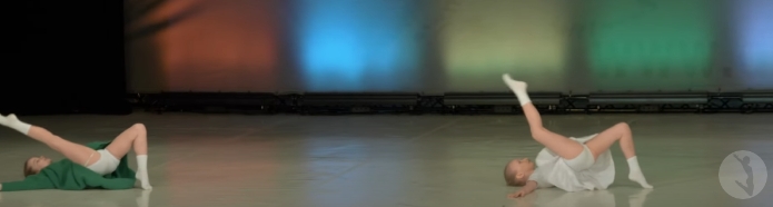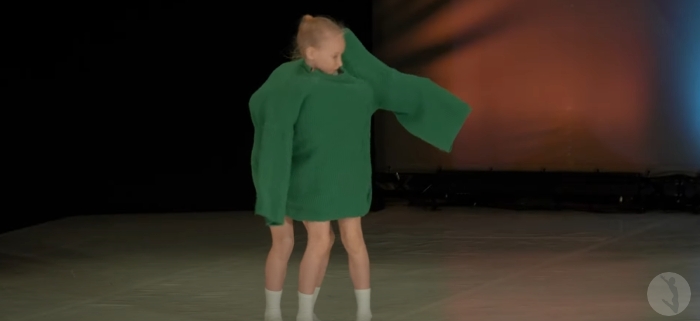 白のレオタードにスカートや大き目のシャツを着て、ダンスしているようです。