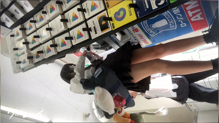 制服女子2名をそれぞれ電車内とコンビニで逆さ撮りする作品です。