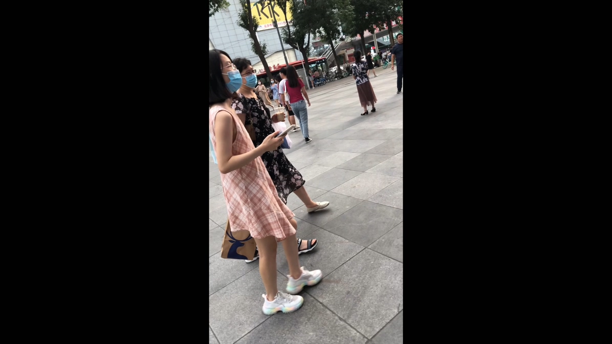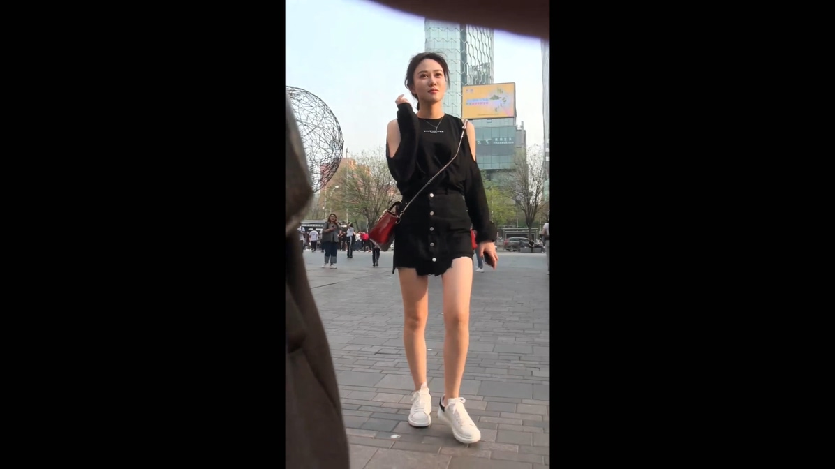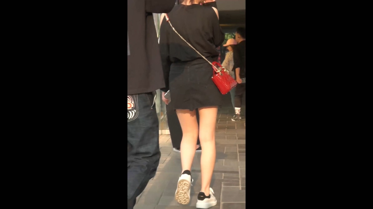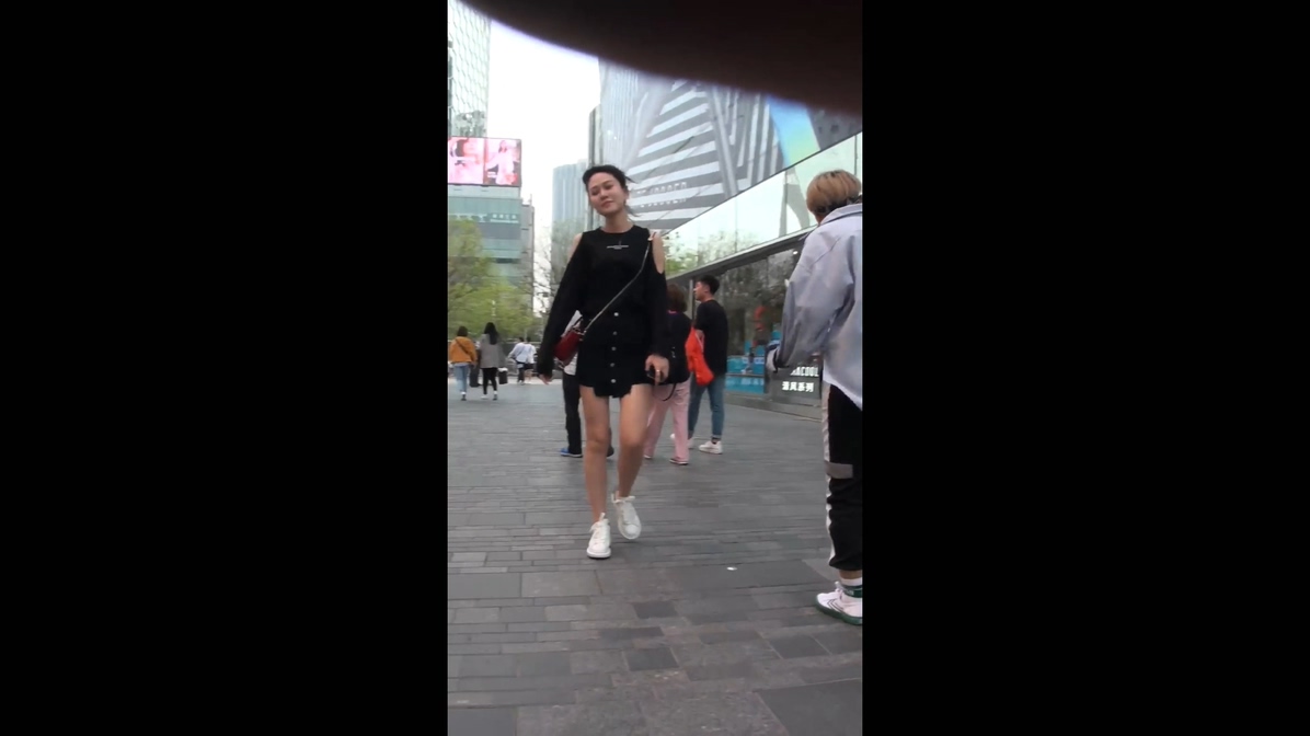 画面にはタイトミニな白ワンピースの女性が歩いています。