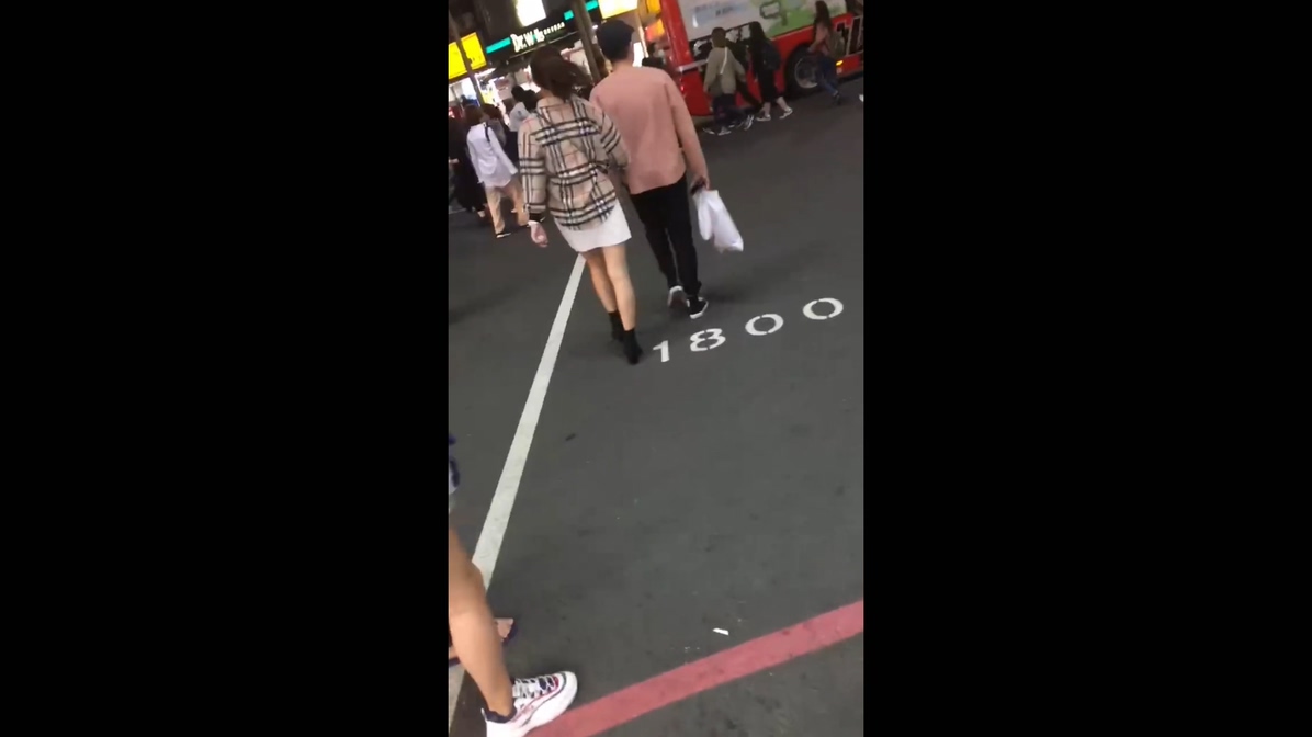 白いタイトスカートを履いており、彼氏らしき男性と腕を組んで歩いています。