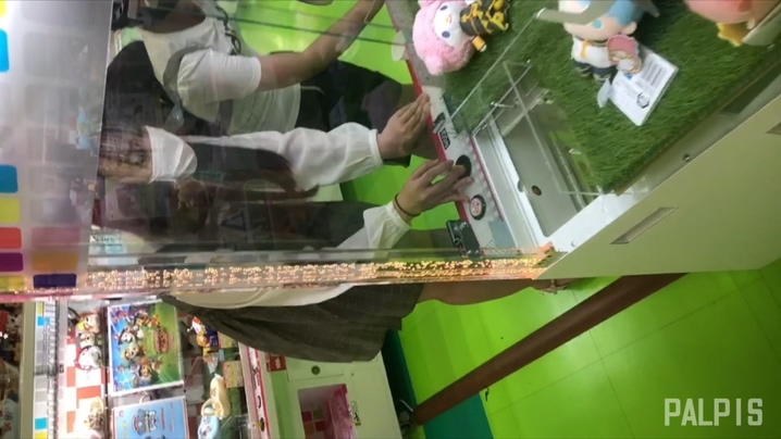さっそくクレーンゲームに興じる二人を撮影者のカメラが見つめ続けます。