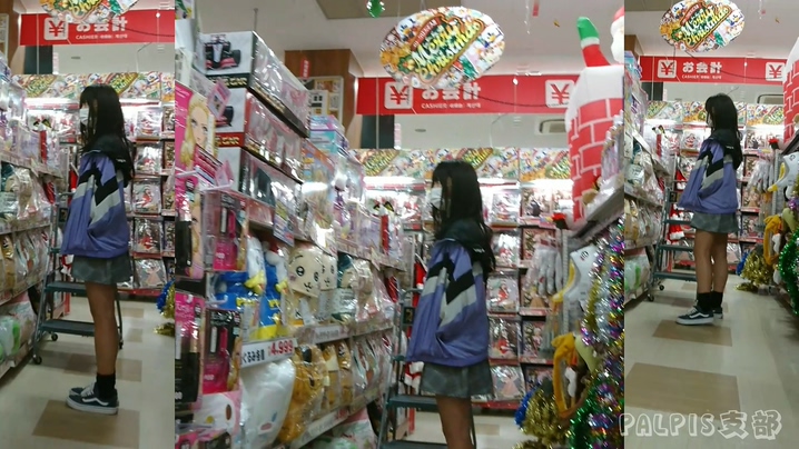 おもちゃコーナーを見ているターゲットの背後に近づいていきます。