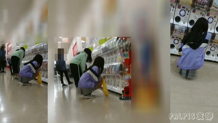 ガチャマシンをしゃがみ込みながら見るターゲット。