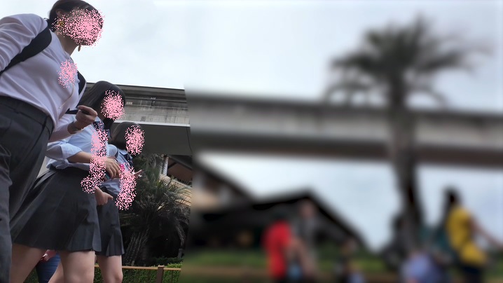 例によって夢の国へ向かおうとする制服女子を狙って、しつこく逆さ撮りしていく作品でした。