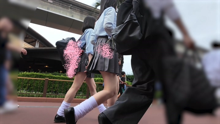 夢の国に向かおうとする制服女子を狙って逆さ撮りする作品です。