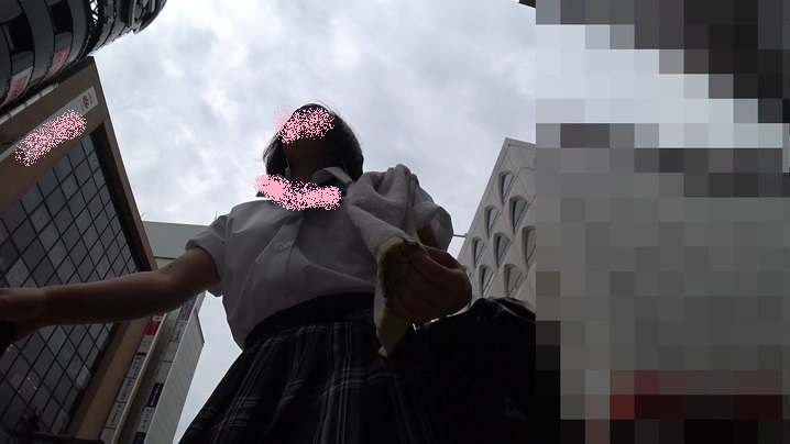 画面には涼し気な夏服の制服女子がいて、歩いているところを前方からローアングルで撮っているようです。